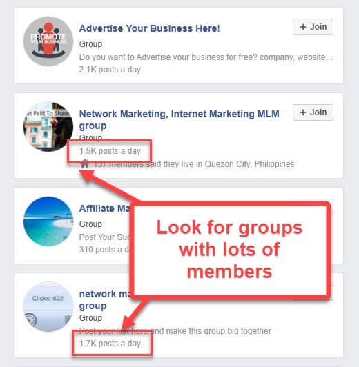 There are different affiliate marketing groups on Facebook where people discuss products and strategies. Even better, joining a group comes at no cost to you.
