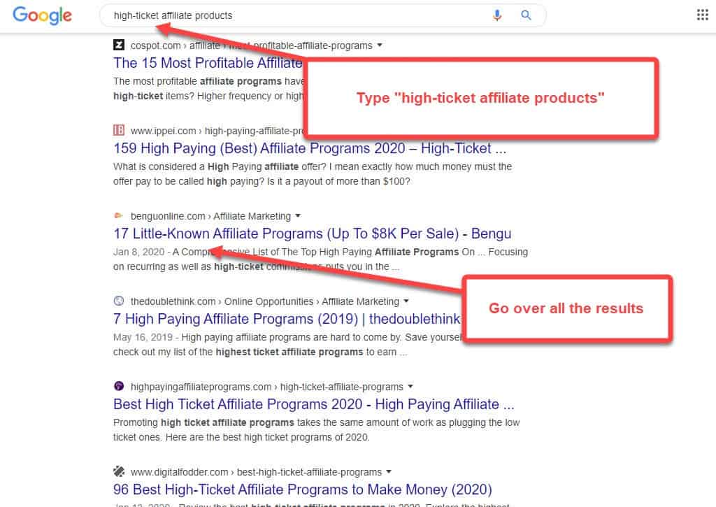 You can also search for high-ticket affiliate products on Google.