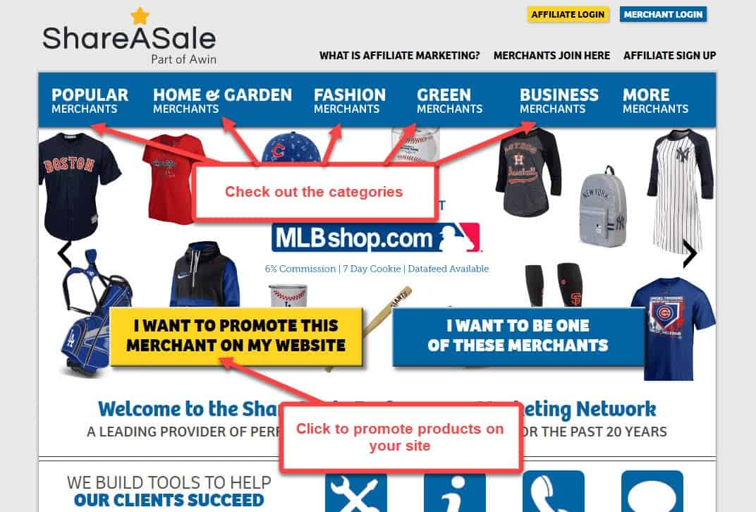 On ShareASale, you can click on any of the subcategories to get started.
