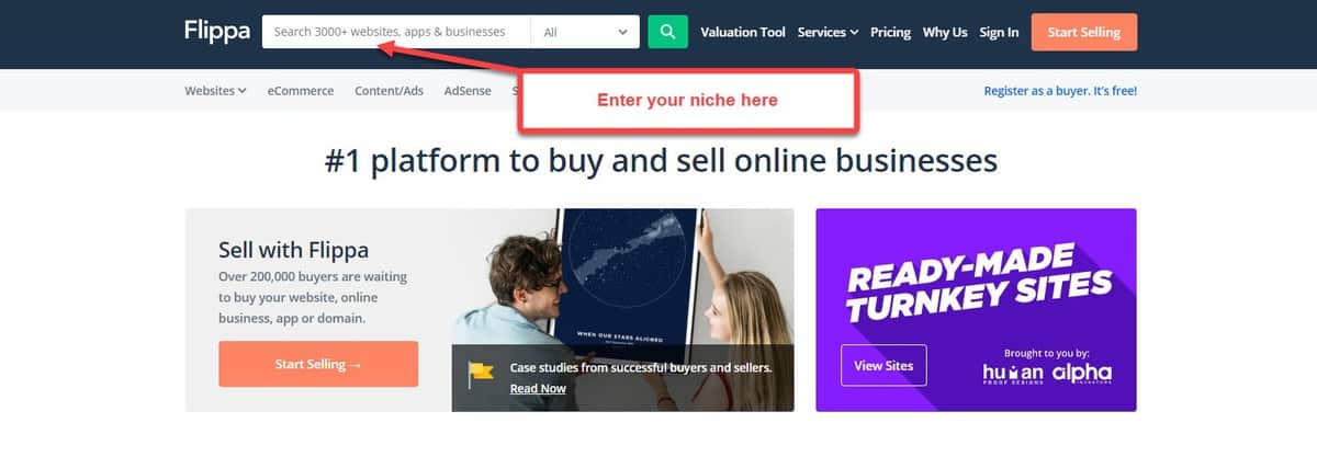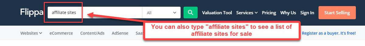 Flippa is a site that buys and sells websites. Every now and then, you’ll find affiliate sites get sold on the platform.