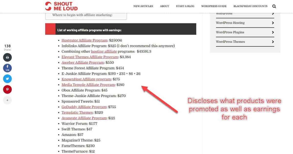 If you’re lucky, you may even find an article that breaks down what products were promoted and how much the marketer earned. This ShoutMeLoud post is an example.