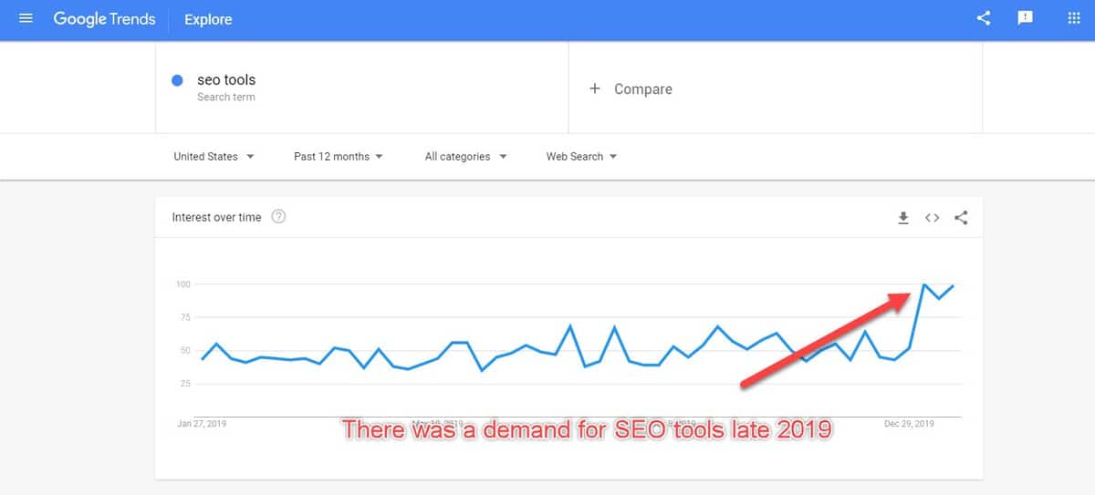 You can filter the results by region, time, and category. The Compare feature also comes handy when you want to compare two different niches.