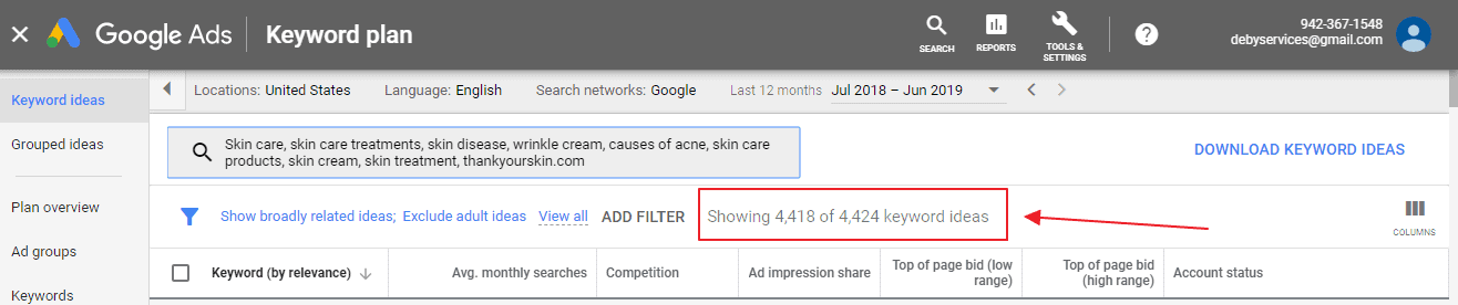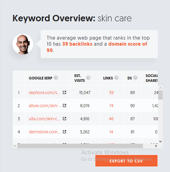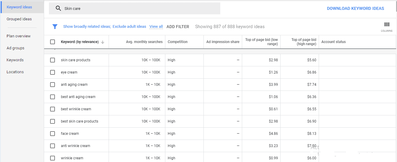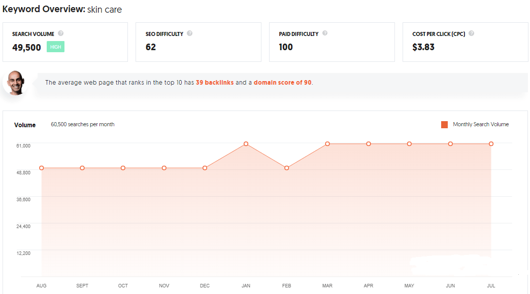 For this example, I’m still going to use our keyword “skin care,” and below is the result you’ll see:
